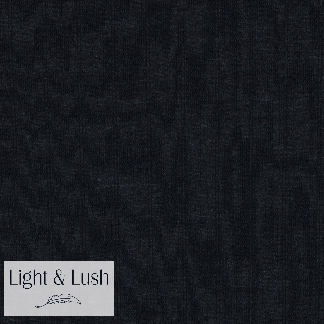 ST023 80% Merino Wool, 20% Silk 66" W Jersey Knit Navy, delicate rib Light weight, soft hand, translucent. t-shirts, cardis, turtle necks, dresses Italy
