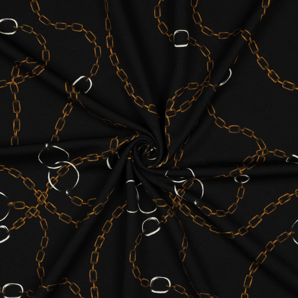 VT0223 64% Viscose 30% Nylon 6% Elastane 61" W Printed Ponte di Roma knit Digital Print - Chains on Black Medium weight, soft, soft hand, opaque Pants, jackets, dresses, skirts